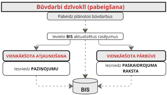 Par būvdarbu pārtraukšanu vai pēc to pabeigšanas informācija jāiesniedz BIS.